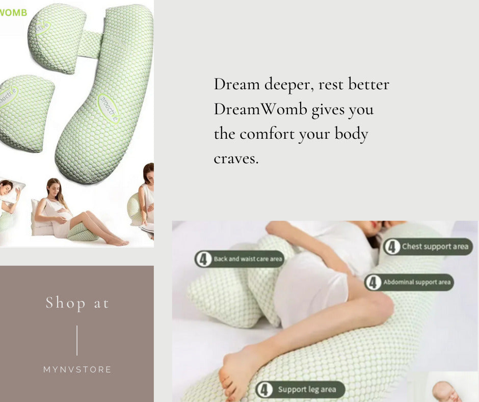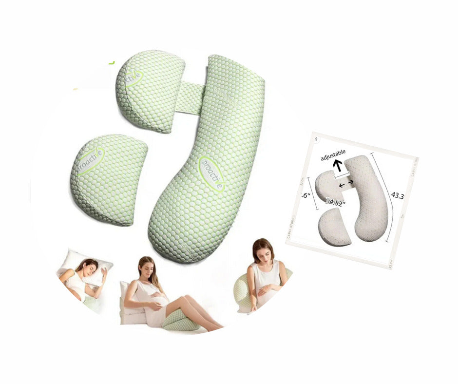 Our Pregnancy Pillow is designed to hug your body and support your bump, back, hips, and legs—all at once. It's soft, breathable, and shaped to help you sleep deeply and wake up feeling refreshed.