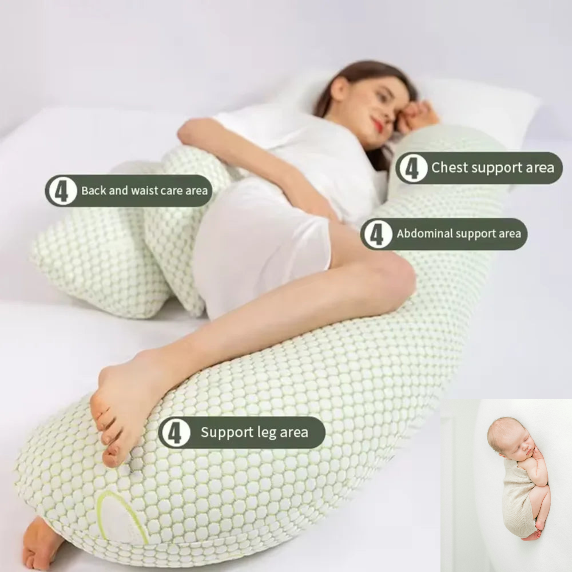 Tossing and turning all night not only leaves you tired but can also affect your baby’s health. Regular pillows just don’t give the full-body support you need.